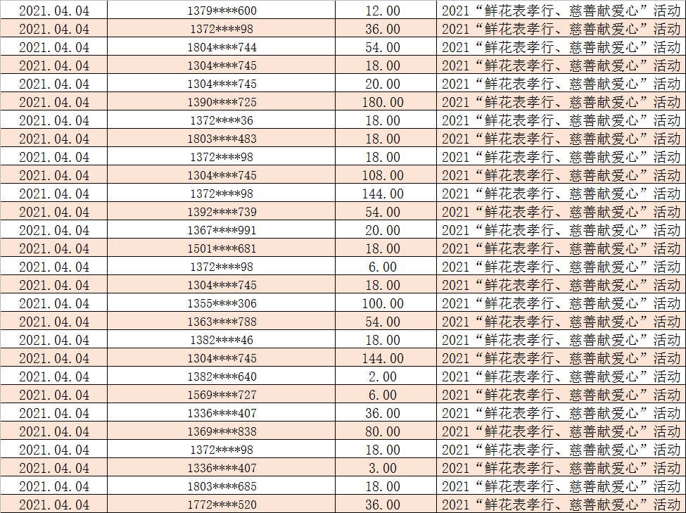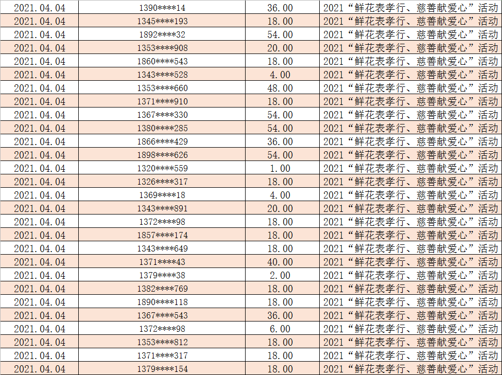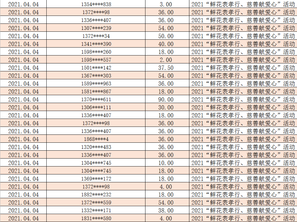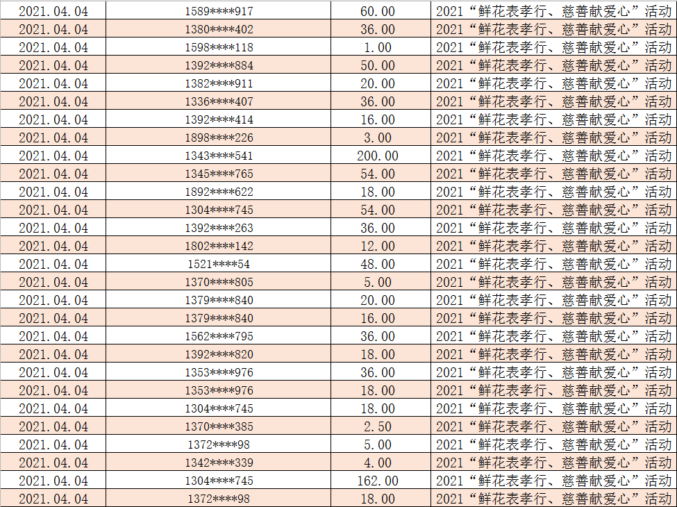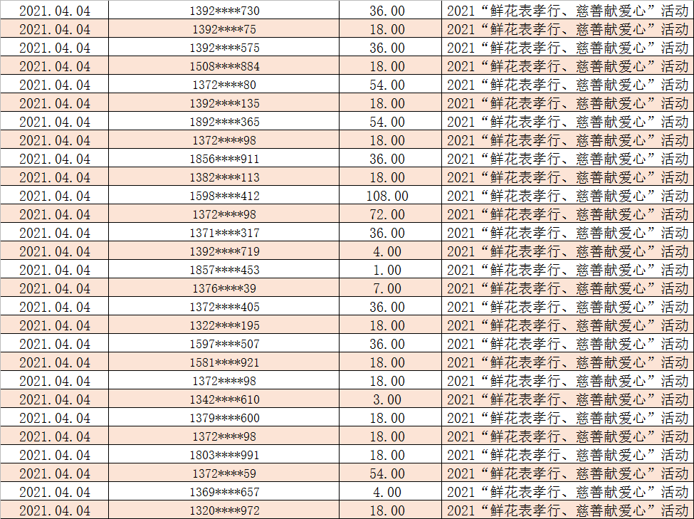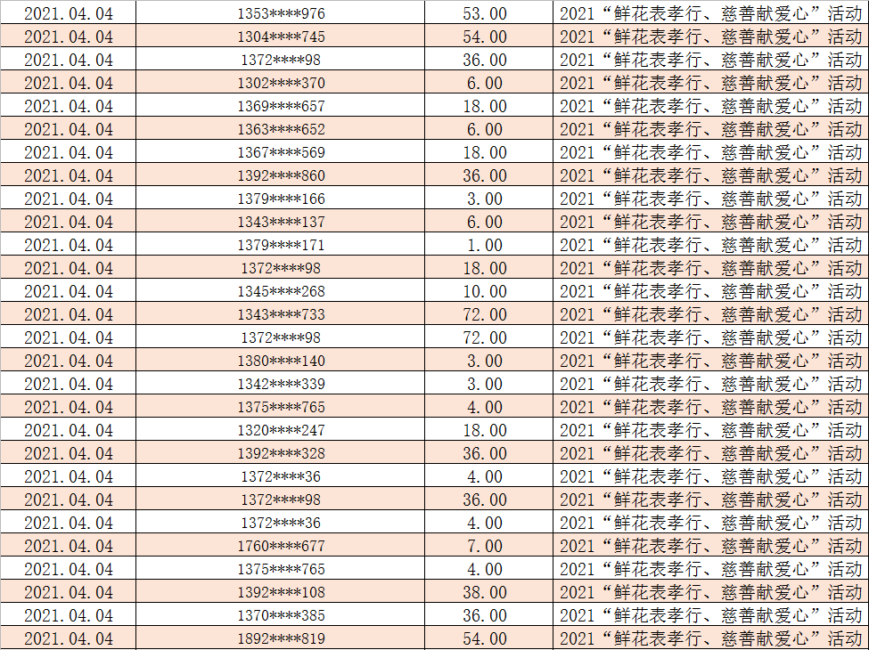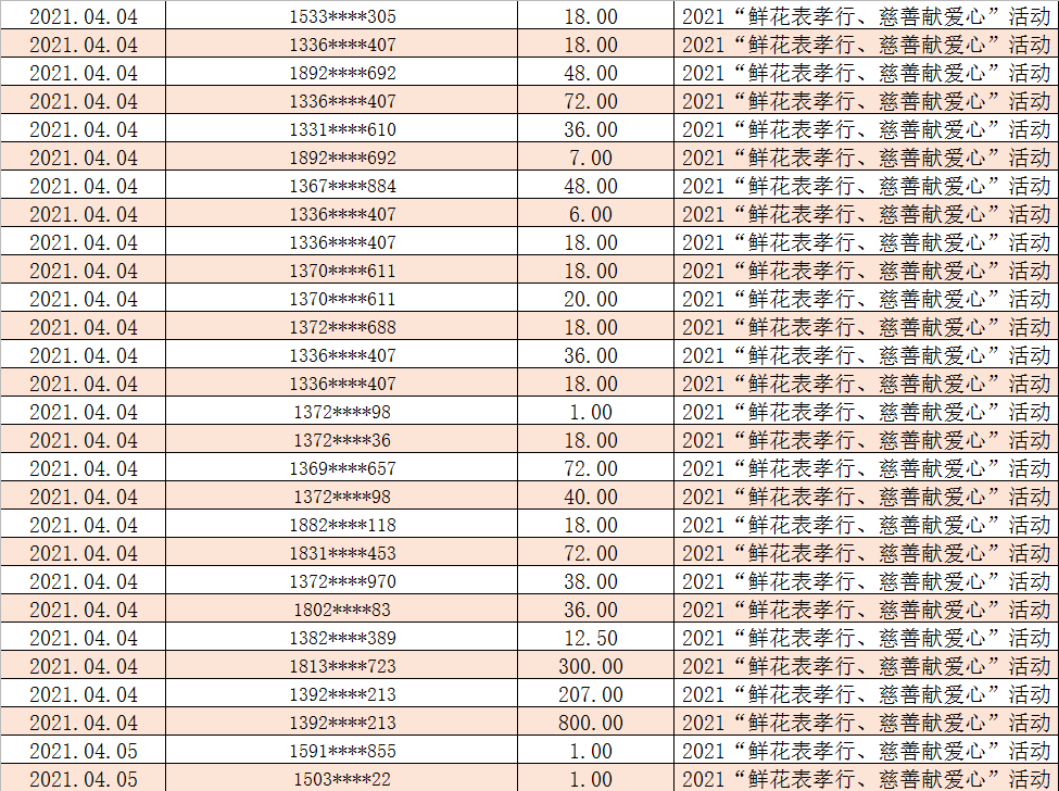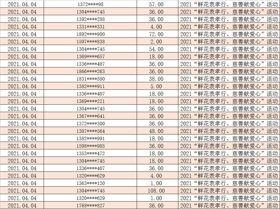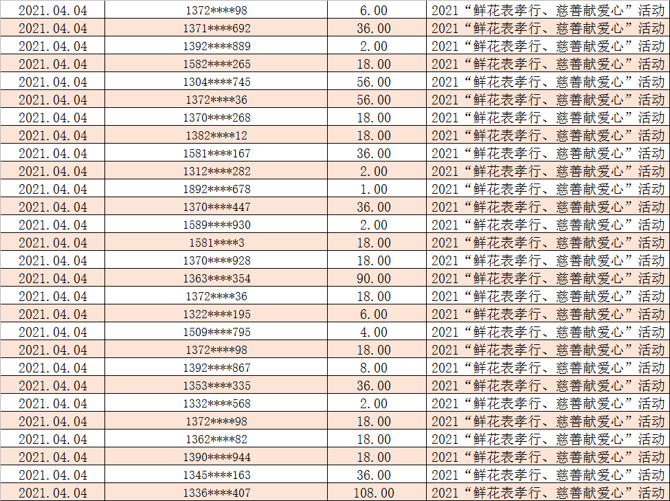 上图为杏坛慈善会2021年4~6月接收资金明细