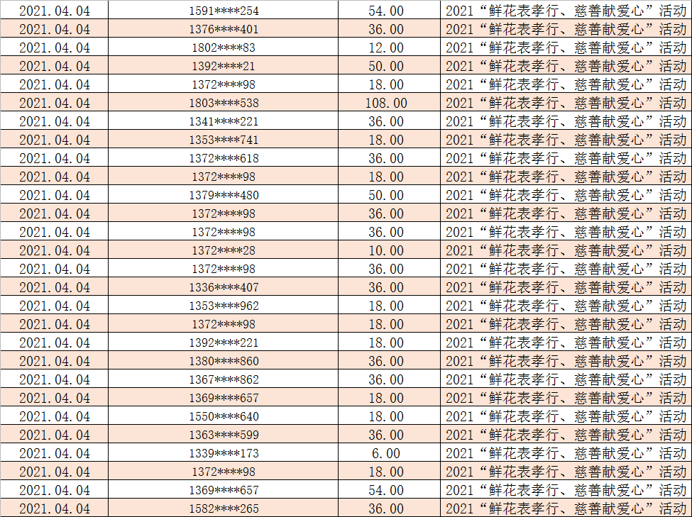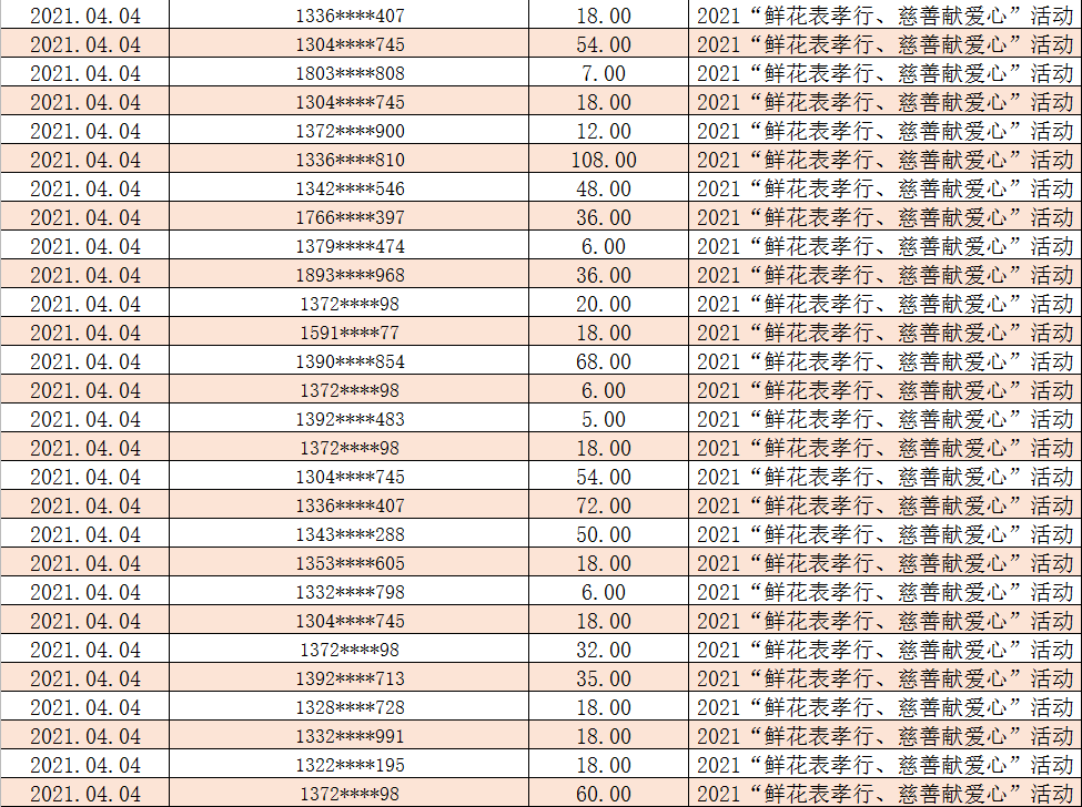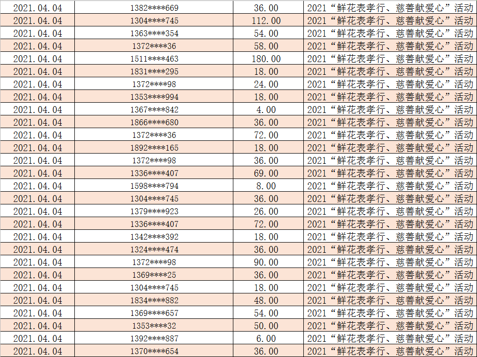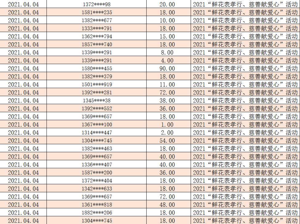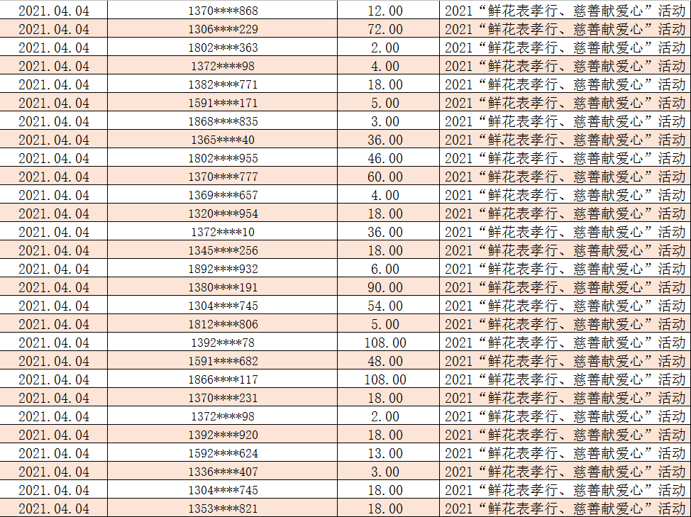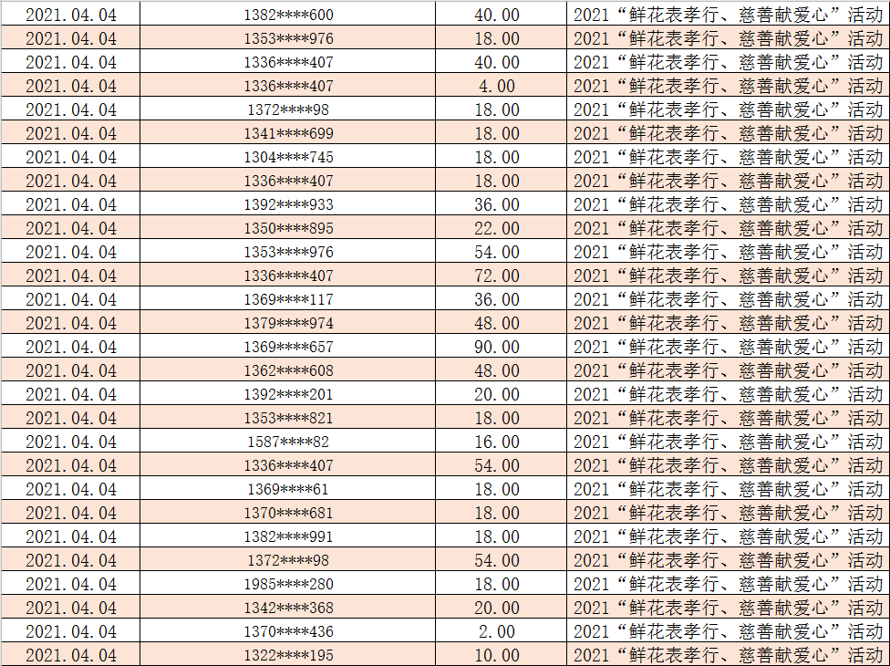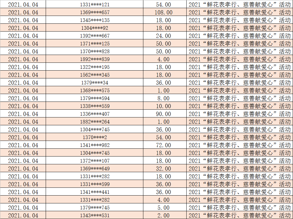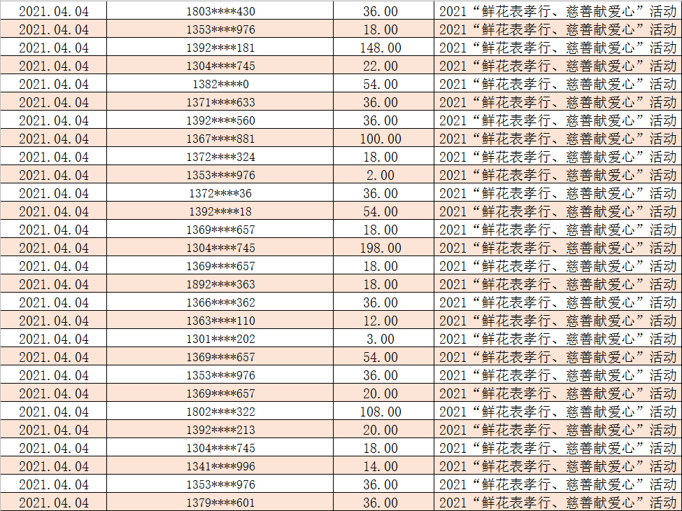 上图为杏坛慈善会2021年4~6月接收资金明细
